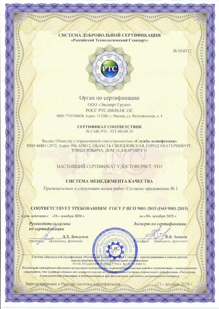 При заказе разовой услуги после проведения обработки предоставляется гарантия, ее срок определяется специалистом на месте выполнения работ.