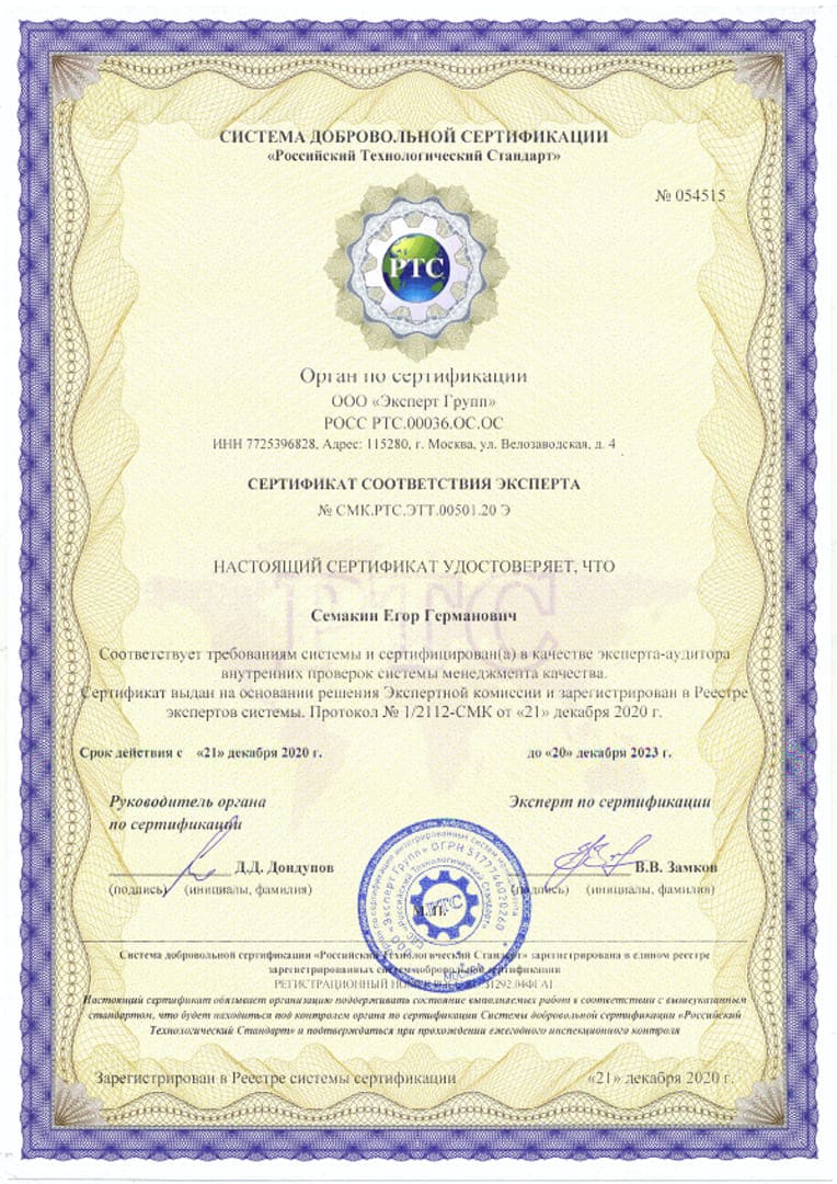 - Сертификация «Российский технологический стандарт»