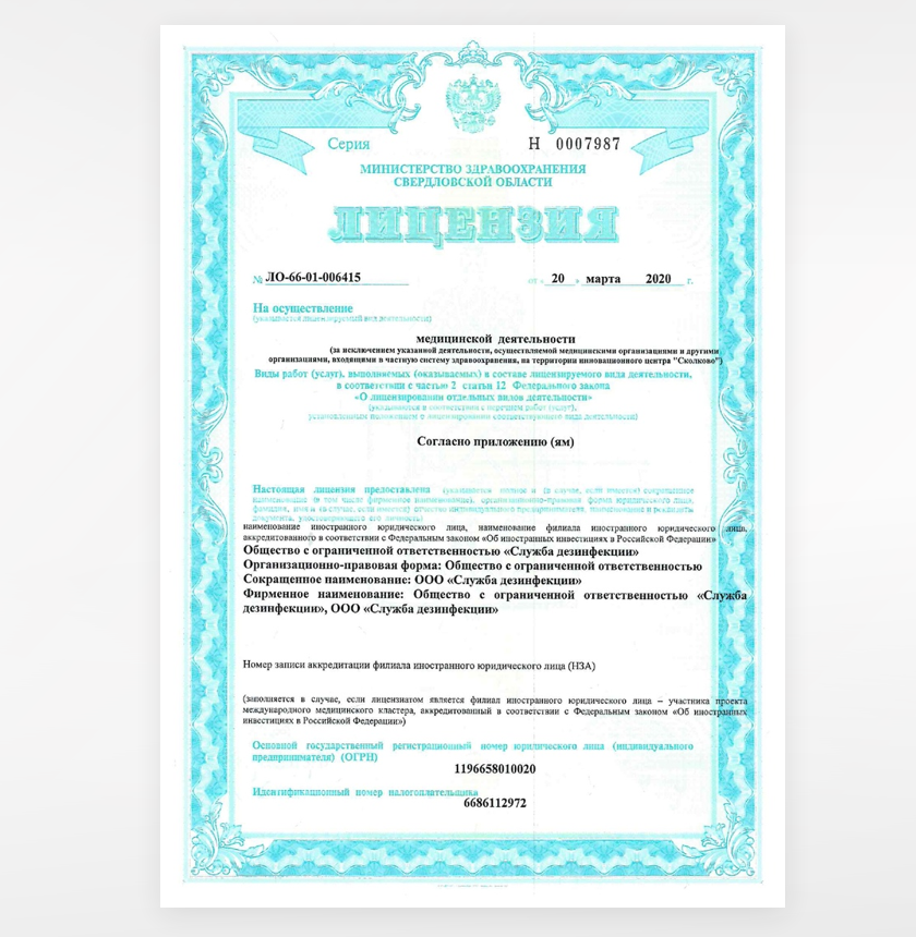 - Сертификация сотрудников и медицинская лицензия